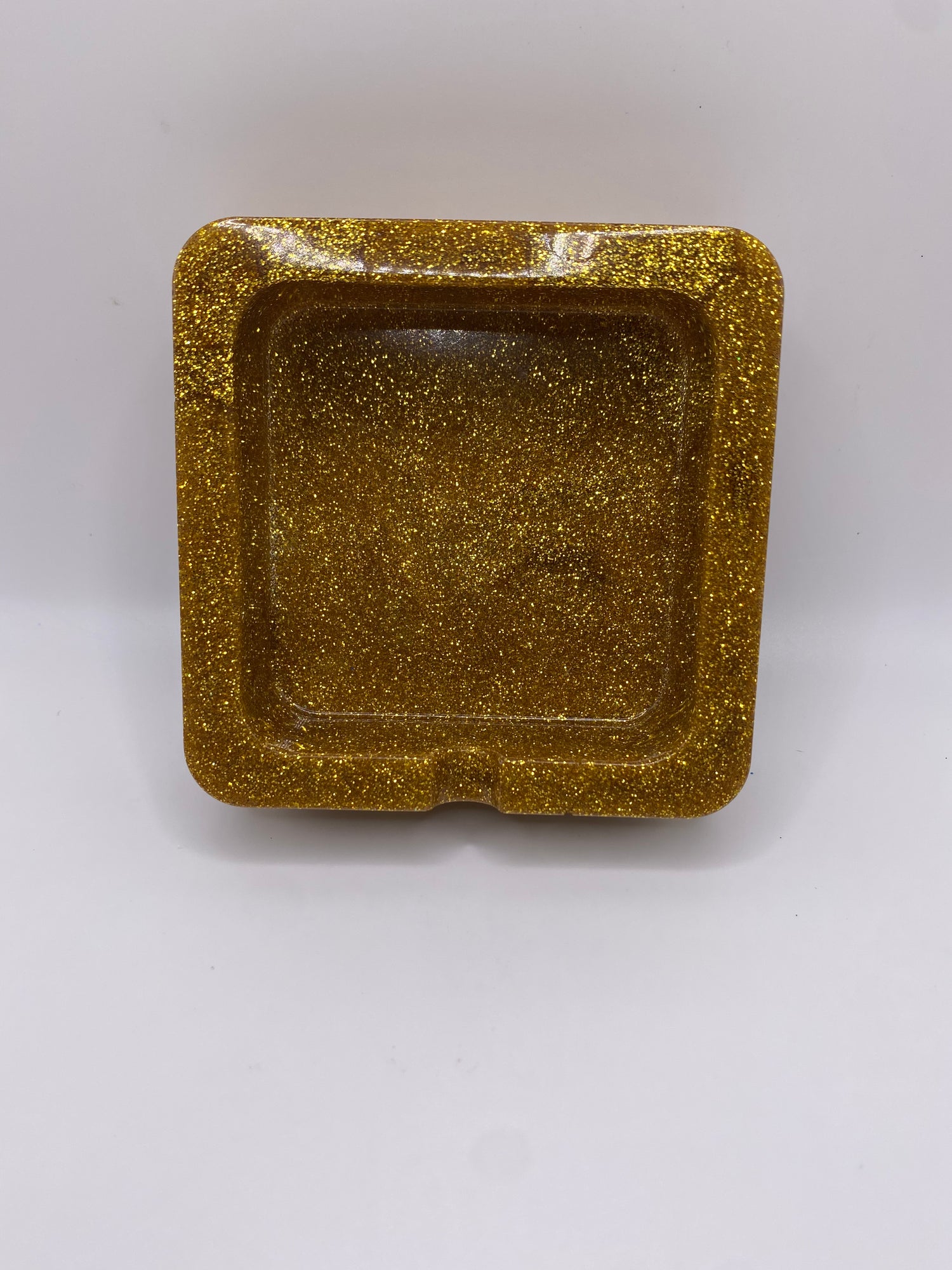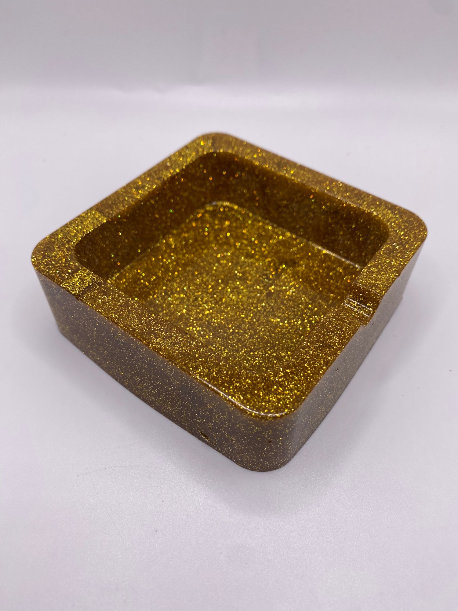 Gold Glitter Resin Ashtray. Very durable. This ashtray can be customized with an Black Initial/Letter.